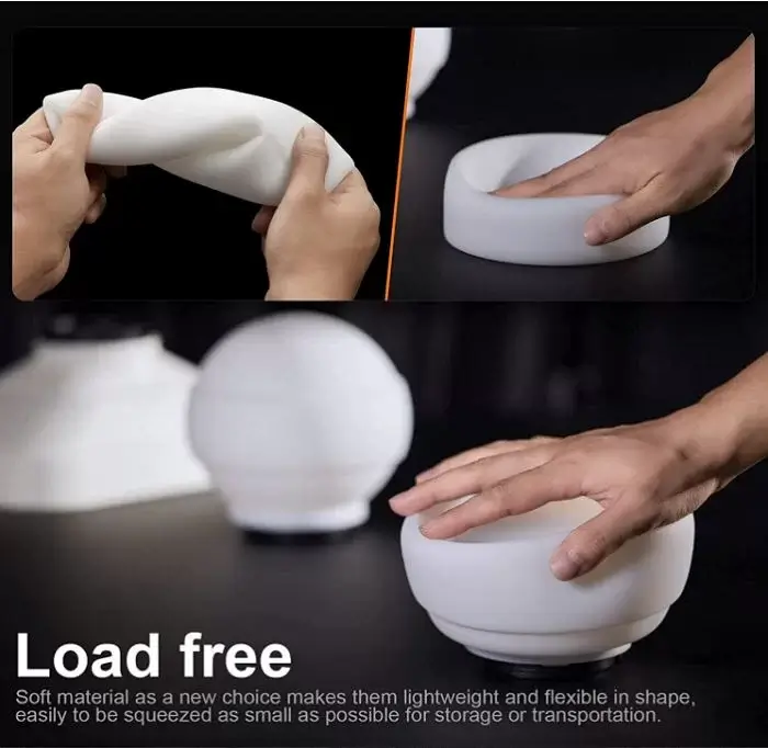 Được làm bằng vật liệu Silicon mềm giúp tản sáng có trọng lượng nhẹ và hình dạng linh hoạt, dễ dàng gấp lại theo hình dáng nhỏ nhất để lưu trữ.